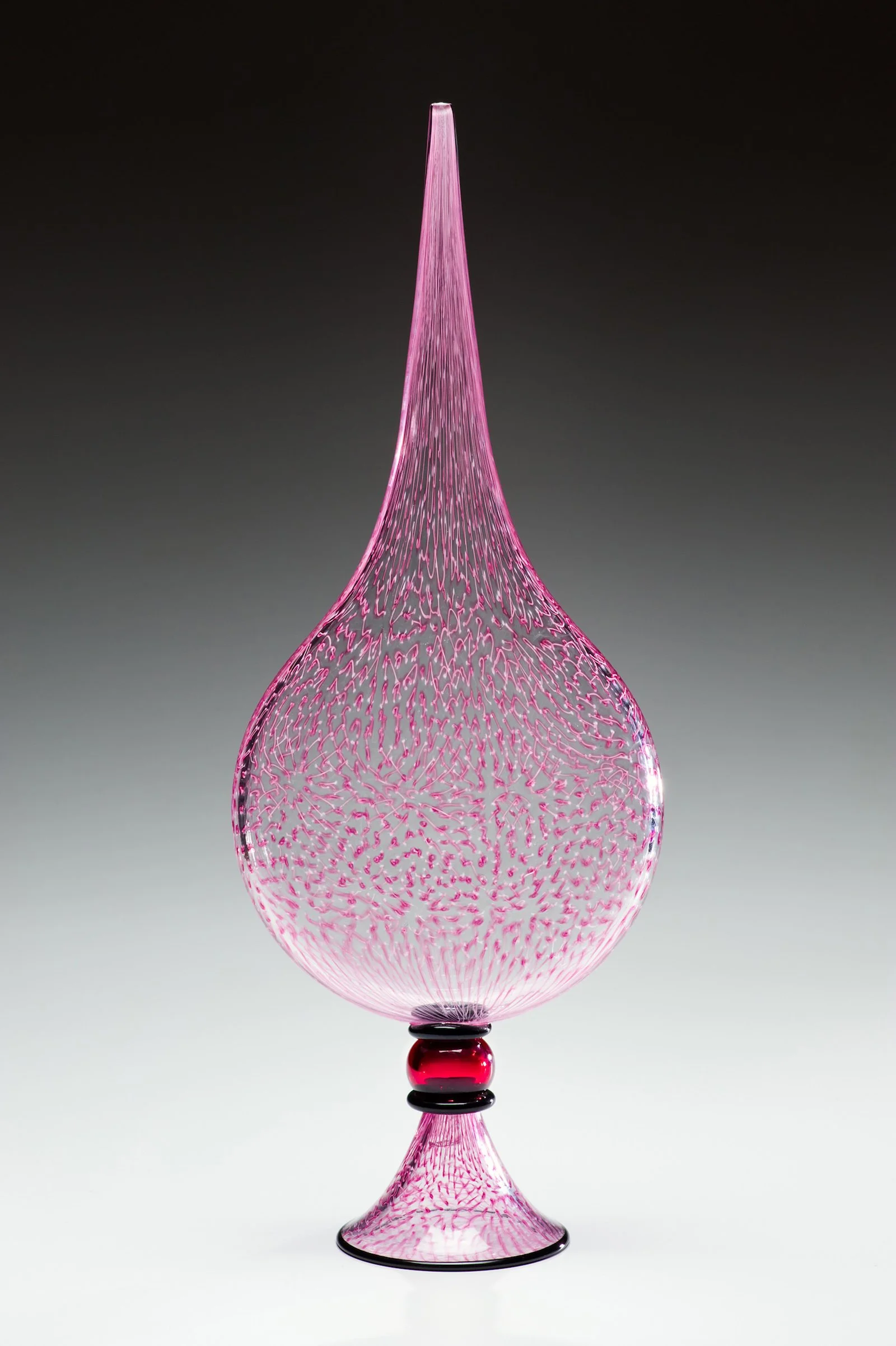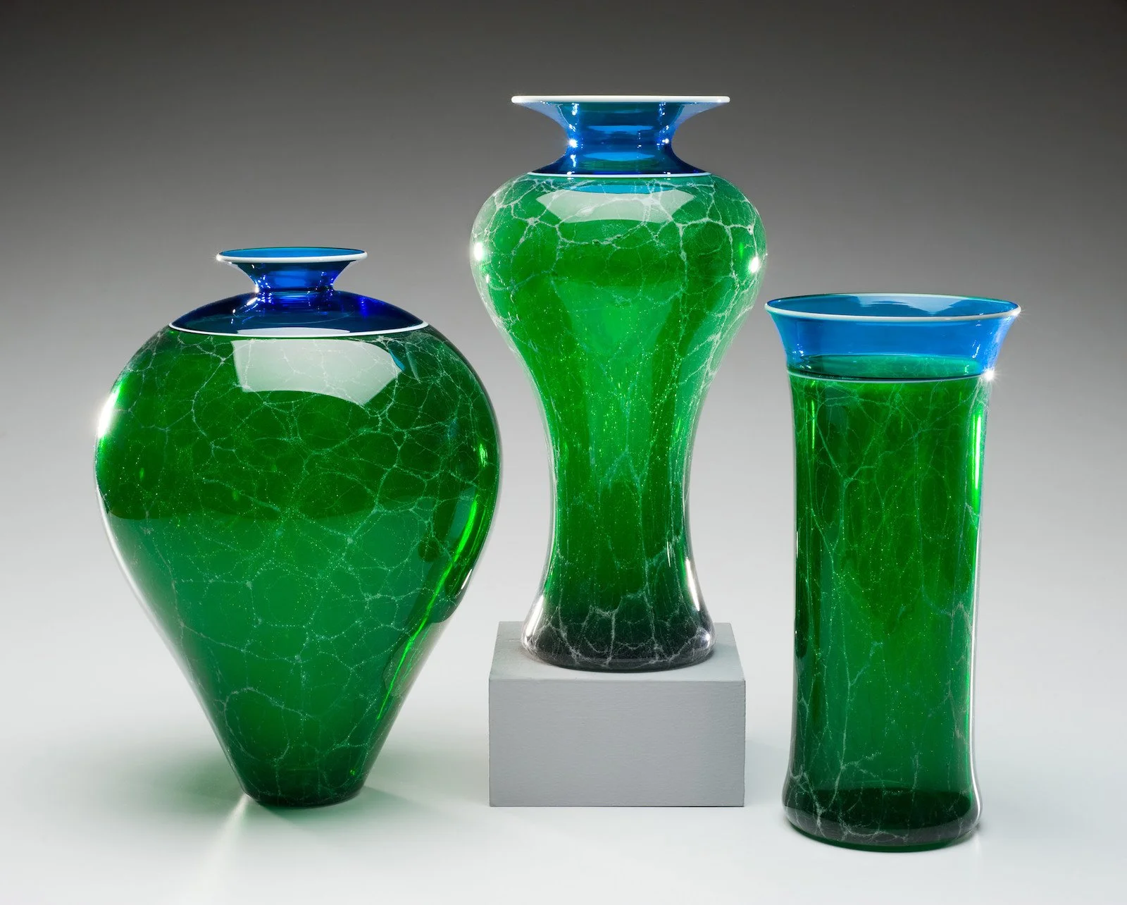 Kenny Pieper was born in Birmingham, Alabama and raised in the mountains of North Carolina. He began his craft career in high school when he studied at the Penland School of Crafts. Initially, he studied pottery with Norm Schulman and Cynthia Bringle. Later, he found his passion for glass under the tutelage of Richard Ritter. After high school, Kenny moved to Detroit in 1978 under scholarship at the Center for Creative Studies; he subsequently received his B.F.A. from California College of Art and Design, Oakland, CA. he then spent 16 years working as a glassblower in the San Francisco East Bay area. Kenny’s career came full circle when he left California and moved back to North Carolina. While constructing a studio there, He worked at Penland School and managed the glassblowing and lampworking studios. It was during this fruitful time that he developed his expertise in the tradition of Italian glass. Kenny now resides in the beautiful mountains of North Carolina. Reflecting the harmony and beauty of his surroundings, Kenny produces an exquisite line of glass vessels and sculpture. He has work in the collections of Corning Museum of Glass, Museum of Fine Art Boston, New Bedford Museum of Glass, Asheville Art Museum, New Orleans Museum of Art, Hickory Museum of Art, as well as many private collections.