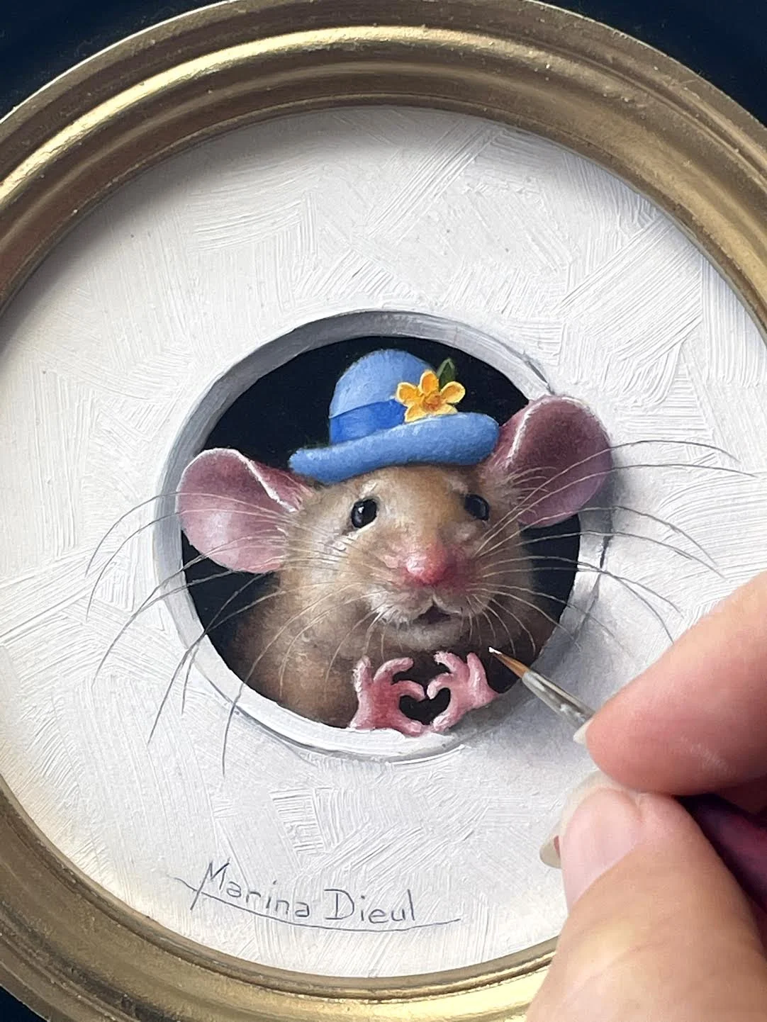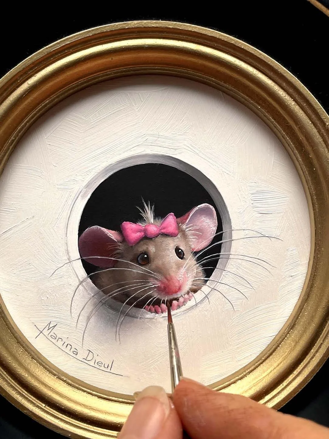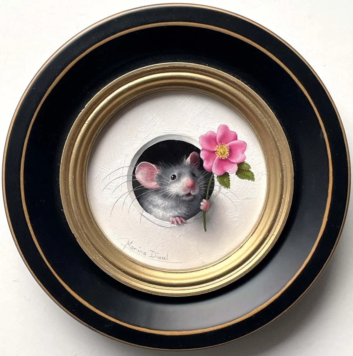 “Petite Souris 833” oil , 4” diameter framed